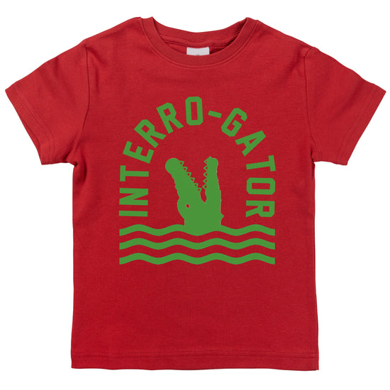Kids sure do ask a whole heck of a lot of questions, don't they? Like mini interrogators! This cute funny, punny alligator tee says just that.