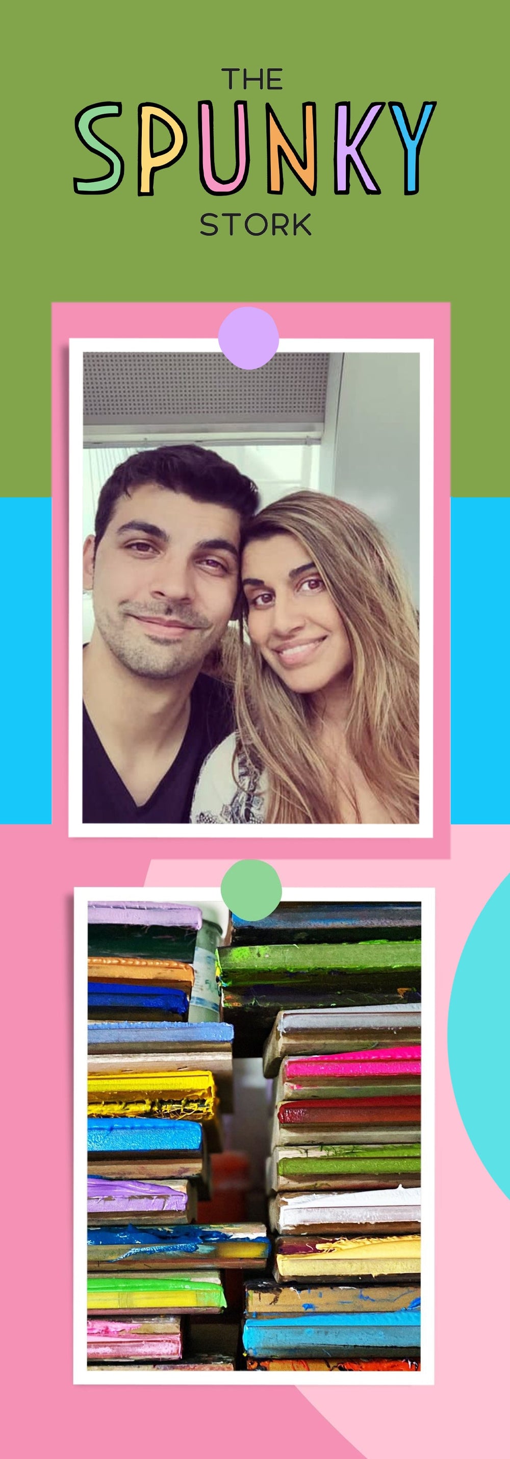 My name is Aliya. His name is Uzzi. Together we are the Spunky Stork. We sell happy, colorful, funny, and punny organic cotton tees for kids. We love creating clothing that makes people smile.