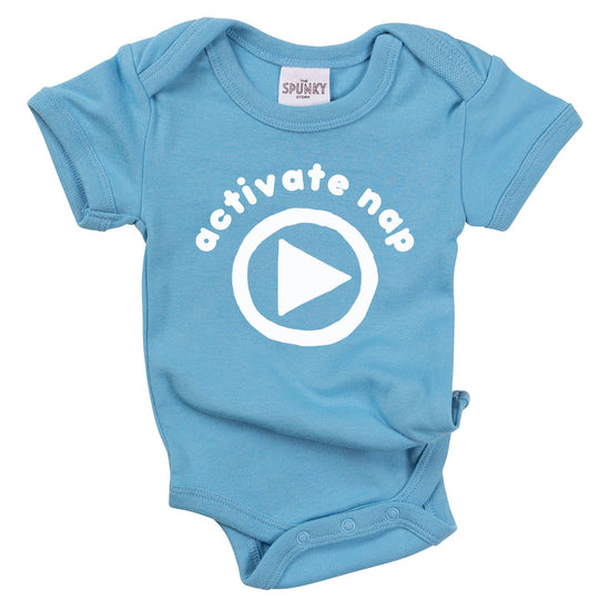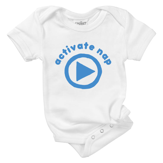 We all know you love the little babe. But don't you wish you had a snooze button? Sometimes? This funny organic cotton romper features a play button that reads ACTIVATE NAP right underneath. Great gift for a new mom!
