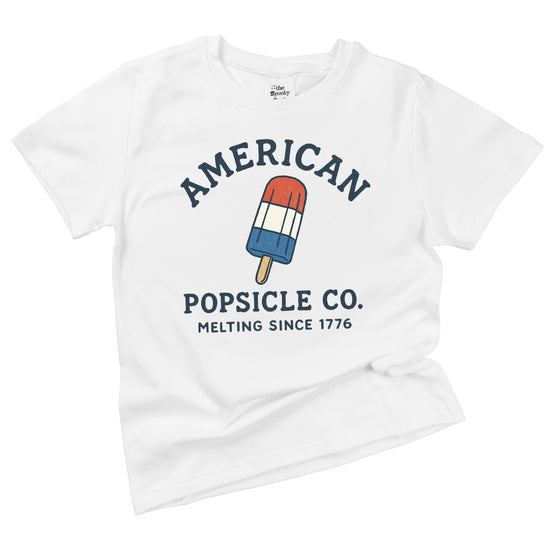 Red, white, and cute! This retro-style 4th of July tee features our hand-drawn "American Popsicle Co." logo, complete with a patriotic pop and vintage charm. Made from ultra-soft, breathable organic cotton, it's perfect for parades, picnics, and fireworks. Available exclusively in toddler and youth sizes