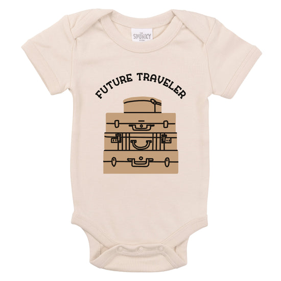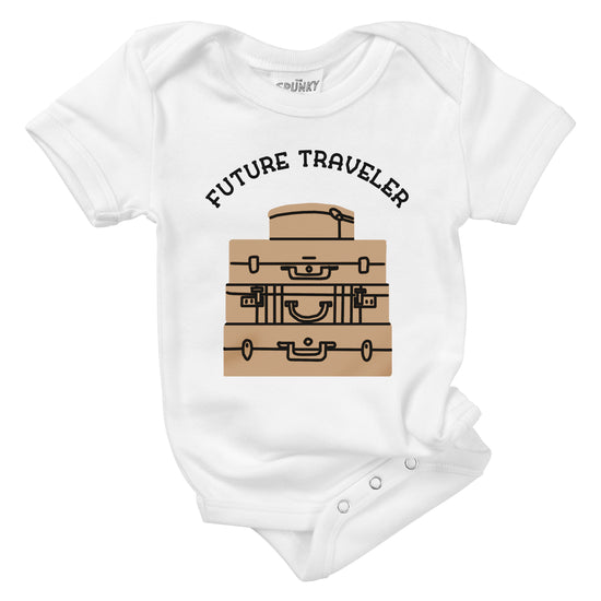 Is your little one already discovering, or wanting to discover, the joy of travel? This adorable design features a set of vintage style suitcases and the text, Future Traveler, which is perfect for your mini jet-setter to-be! Comes in your choice of baby bodysuit or toddler tee.