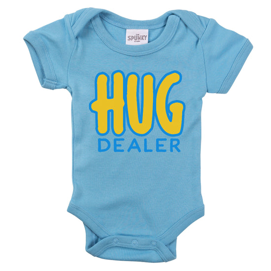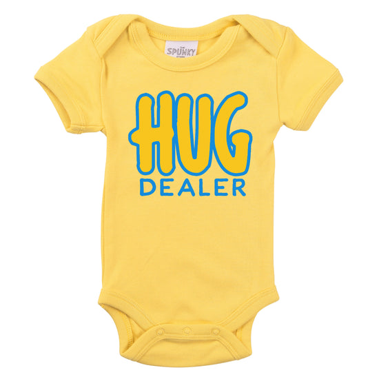 Dealing in big, snuggly, precious hugs all year long. This hilarious Hug Dealer organic cotton baby bodysuit is a fun, colorful way to show off your little one's cuddle skills.