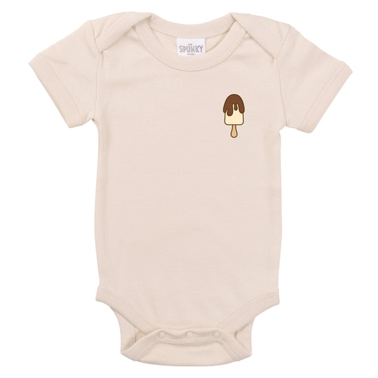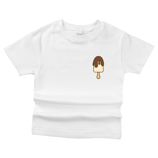 Check out our cute ice cream baby and kids organic cotton top! Featuring a colorful and playful ice cream design on the pocket area, this top is sure to bring a smile to anyone's face. Featuring a vanilla ice cream popsicle stick with melted chocolate. Perfect for Summer!