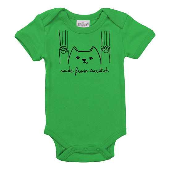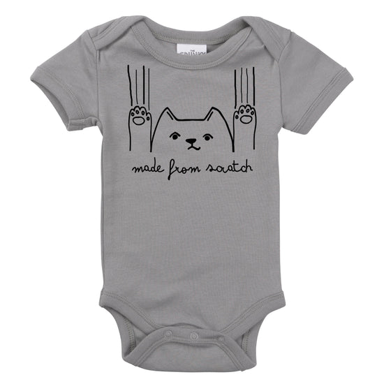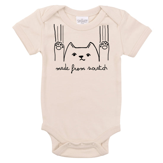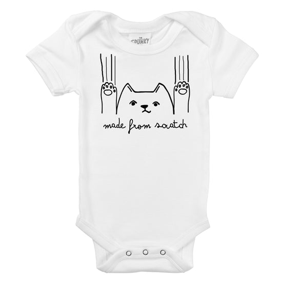 We are major aficionados off the double entendre. And this baby bodysuit is the perfect example. So, if you are baking fan, a kitten fan, or a baby fan... this design rolls all three into one! Featuring a reluctant, scratching kitty cat with the words Made From Scratch below. Isn't it cute?