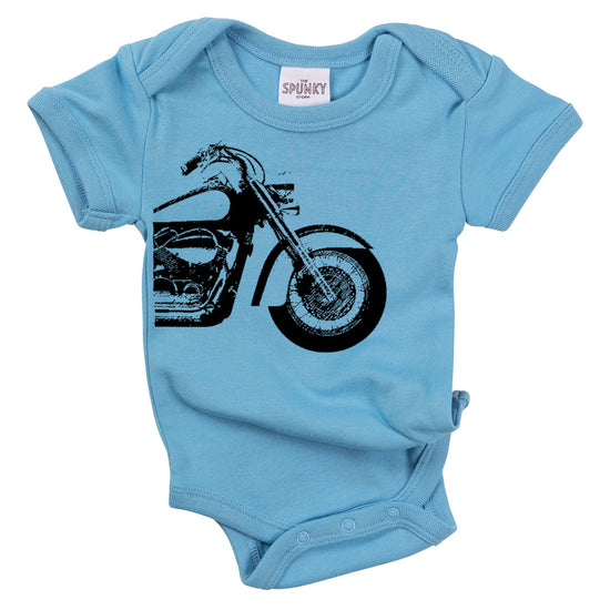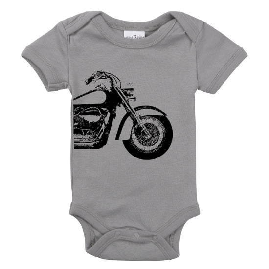 If your little one was born a badass, this screenprinted organic cotton baby bodysuit and toddler shirt is the way to go. We love how the motorcycle is printed along the side seam of the top.