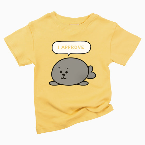 This sealion is giving his stamp of approval... for, what? We have no idea, but he sure is cute! This funny punny design can be screenprinted on your choice of a baby bodysuit, toddler tee, or youth shirt.