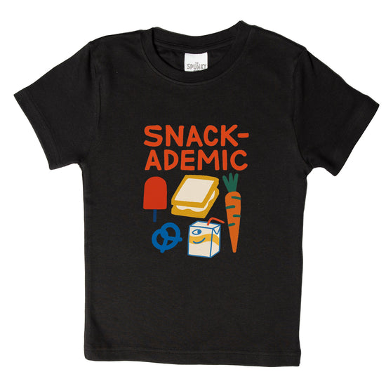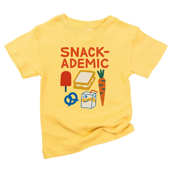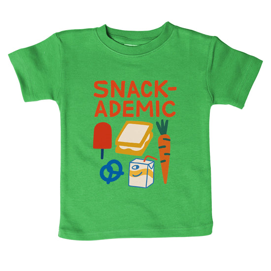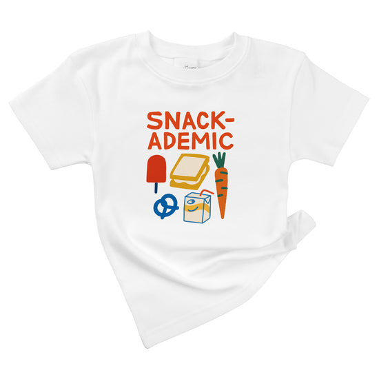 For the kid who aces snack time and story time. Our Snackademic tee celebrates the real back-to-school MVPs: juice boxes, popsicles, sammies, and crunchy carrots. Hand-drawn in a fashion-forward style, this shirt brings elevated playfulness to the lunch table.